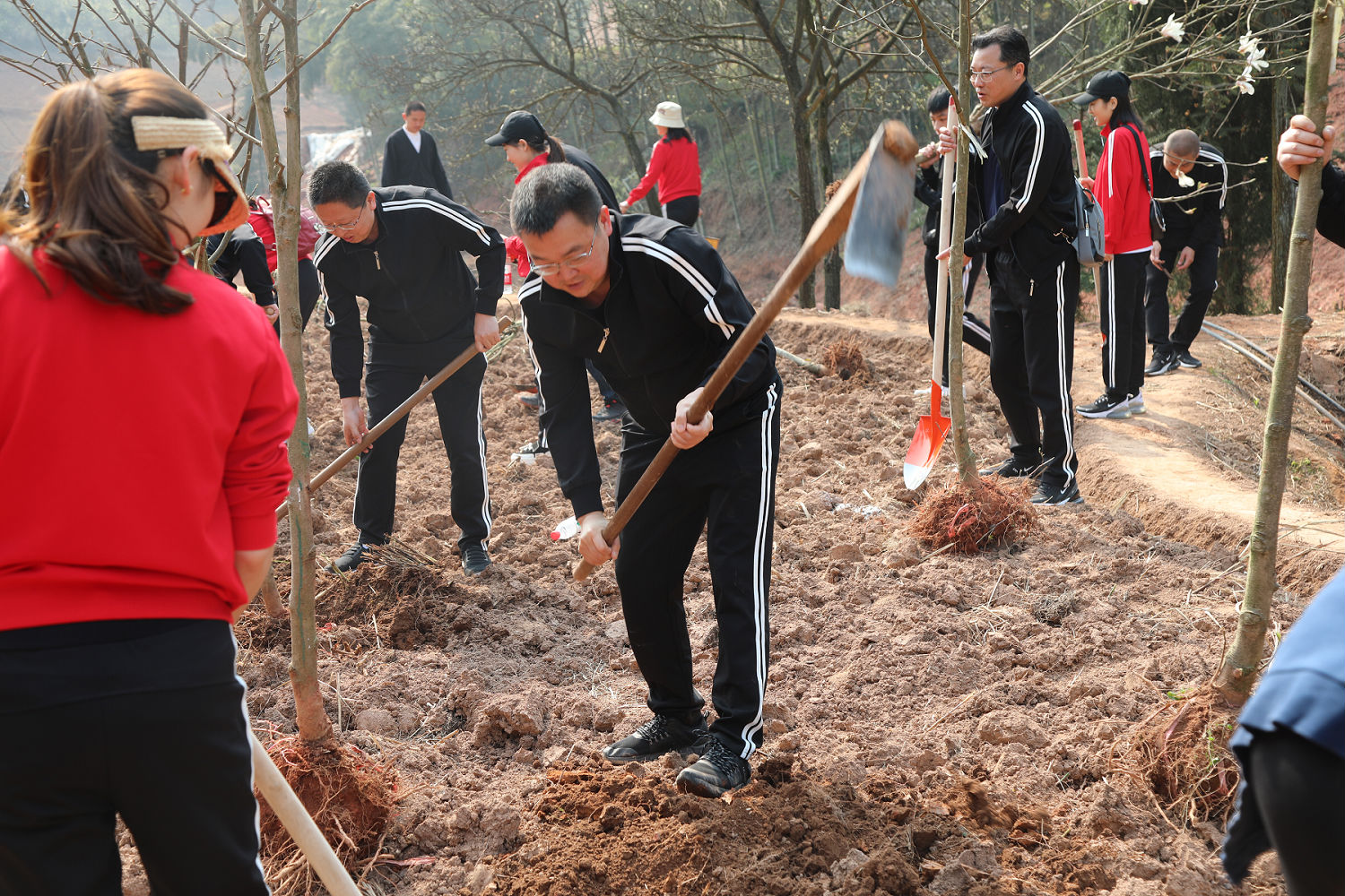 隨后,大家積極主動(dòng)的投入到植樹活動(dòng)中,通過挖坑鏟土、扶樹正苗、踩土定植、澆水灌溉,有條不紊地開展每道種植工序。