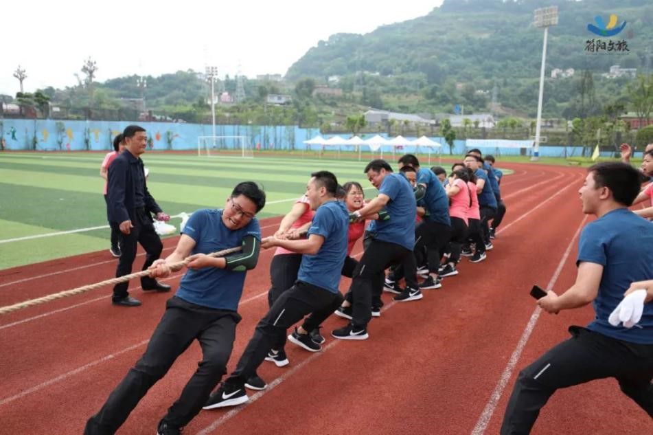 隨著哨聲一響,我們雙手握緊長繩,咬緊牙關(guān)向后拉,為了把握節(jié)奏形成合力,心里默念著“一二、一二”,場上一時僵持難下,但難敵強悍對手,第一局廣源達勝。這仿佛符合多數(shù)人的預(yù)期,但我們怎會被拘于這固定印象,越戰(zhàn)越勇才是符陽文旅人的風(fēng)姿。第二場對決比第一場更加艱難,一開場廣源達占據(jù)絕對優(yōu)勢,我們險被拉到了終線,全憑一口氣死撐,牙關(guān)咬緊,身體后傾,不斷降低重心,腳步穩(wěn)扎,做著別人眼里無畏的掙扎。一定不能越線!在超高壓下堅持了十余秒,那一刻拼的就是韌勁!一群瘦弱的文旅人憑著一股拼勁慢慢把賽場主動權(quán)掌握在了自己手中,每向后移動一步,心里的勁更足了,如荒漠迷路的旅者遇見了綠洲,我們也尋得了力量之源。當(dāng)現(xiàn)場歡呼聲響起時,我們已癱坐一片,不敢置信,我們贏啦!