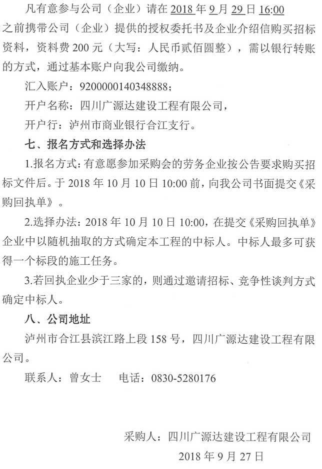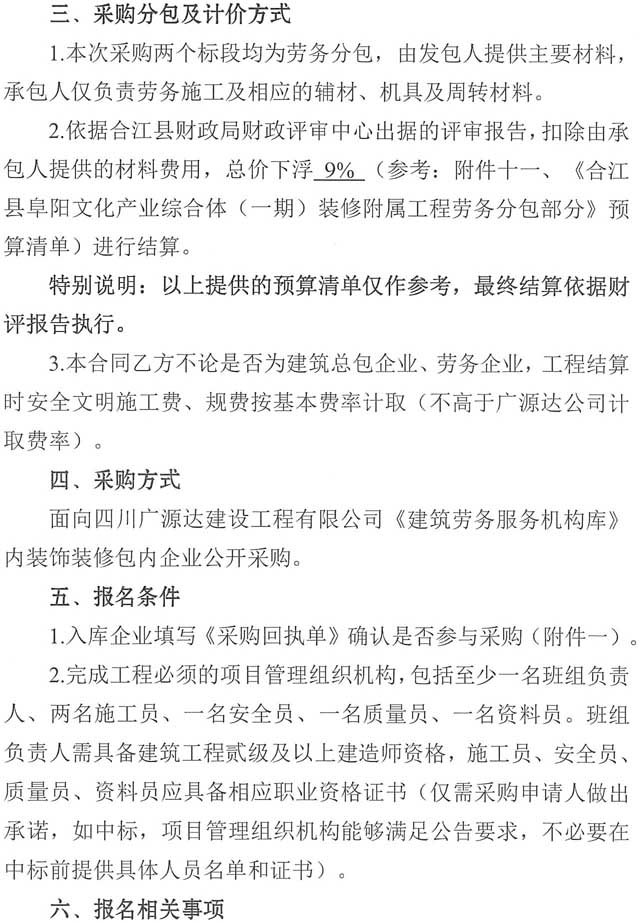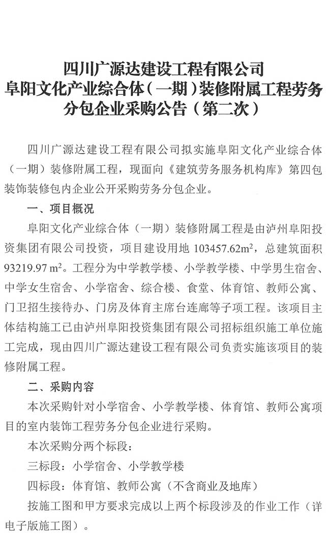 采購公告:四川廣源達(dá)建設(shè)工程有限公司威廉希爾文化產(chǎn)業(yè)綜合體(一期)裝修附屬工程勞務(wù)分包企業(yè)采購公告(第二次)