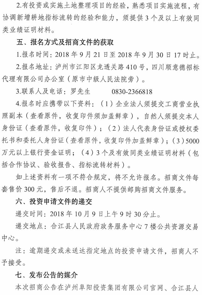 招商公告:瀘州williamhill威廉希爾集團(tuán)有限公司耕地占補(bǔ)平衡項(xiàng)目招商公告