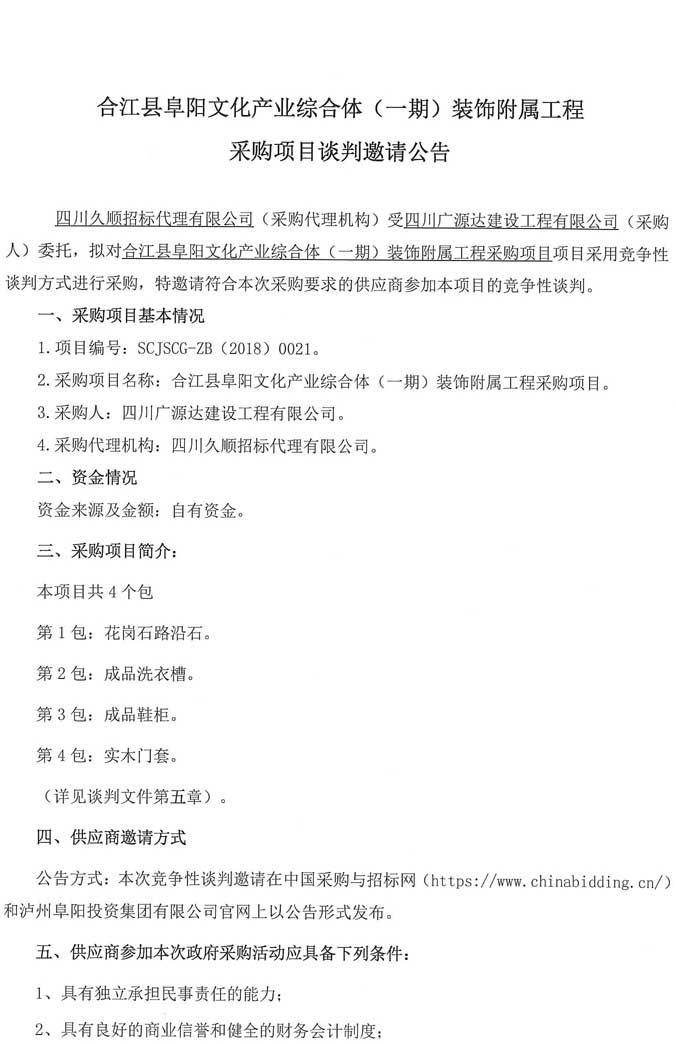 合江縣威廉希爾文化產(chǎn)業(yè)綜合體(一期)裝飾附屬工程采購項(xiàng)目談判邀請(qǐng)公告.doc