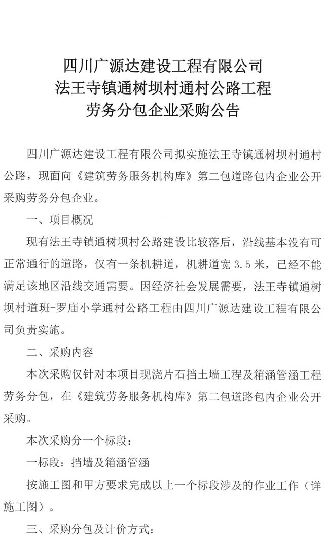 四川廣源達(dá)建設(shè)工程有限公司法王寺鎮(zhèn)通樹(shù)壩村通村公路工程勞務(wù)分包企業(yè)采購(gòu)公告.doc