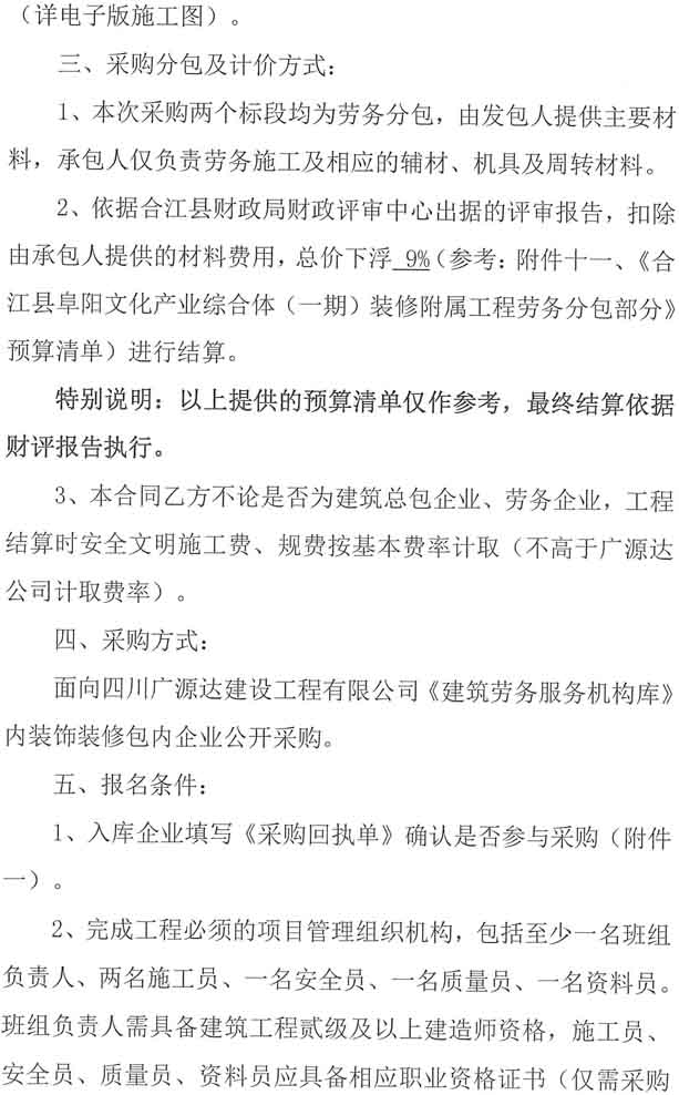 威廉希爾文化產(chǎn)業(yè)綜合體(一期)裝修附屬工程勞務(wù)分包企業(yè)采購公告.docx